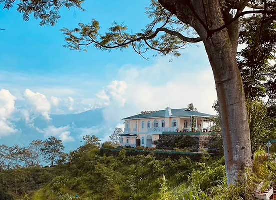 Perched on a misty tea plantation overlooking the Himalayas and the River Rungeet, Glenburn offers a magical monsoon escape. This 150-year-old colonial bungalow blends heritage charm with modern luxury. So, you have Victorian-style bathrooms, Kanchenjunga views, and personalised service. Rain-kissed tea gardens set the scene for nature walks in the clouds, birdwatching, tea tastings, yoga, and curated brunches. Sip on freshly plucked tea as birdsong, gentle rain and fog-draped hills surround you.