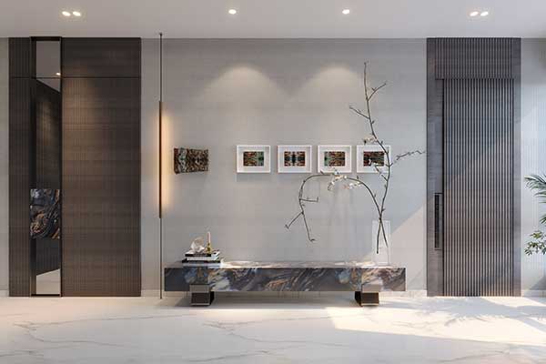 Mirrors, cleverly placed, help reflect this soft lighting, expanding both light and space. Interior designers recommend prioritising ambient and accent lighting, with recessed uplighters, cove lighting, or table lamps to add depth and calm to your space.
