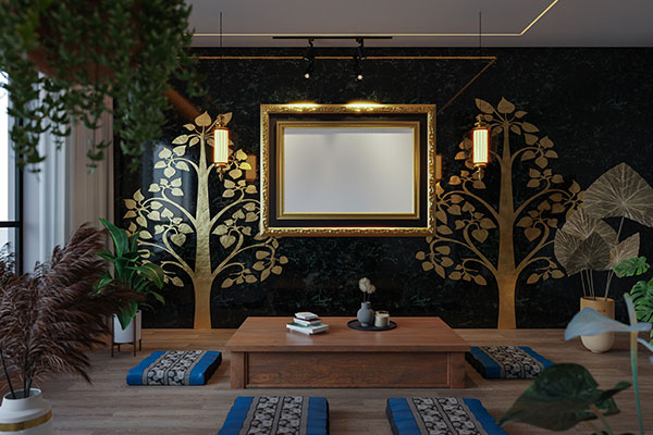 Indigenous crafts are being curated with the same care once reserved for fine art. A Bastar metal sculpture placed on a travertine console. A Gond painting given breathing room on a limewashed wall. These pieces aren’t crowded or over-explained; they’re allowed to stand on their own.