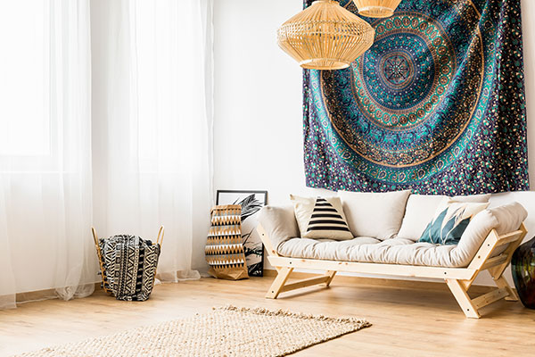 Textiles are lending homes a sense of softness and sophistication. Handwoven ikats, antique Benarasi fragments, or finely detailed kalamkari panels are being framed, stretched, or draped like art installations. In a pared-back living room, a large textile wall piece adds depth without visual noise—rich in texture, restrained in colour.